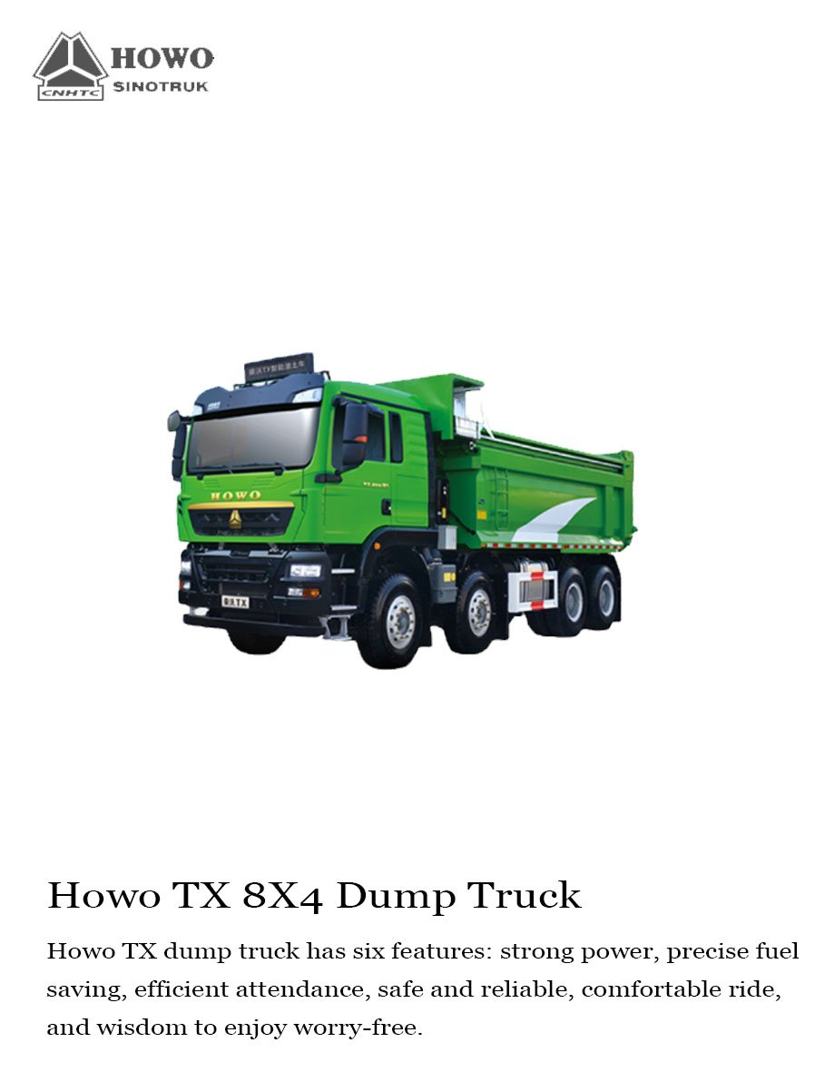 Howo TX dump truck has six features: strong power, precise fuel saving, efficient attendance, safe and reliable, comfortable ride, and wisdom to enjoy worry-free.